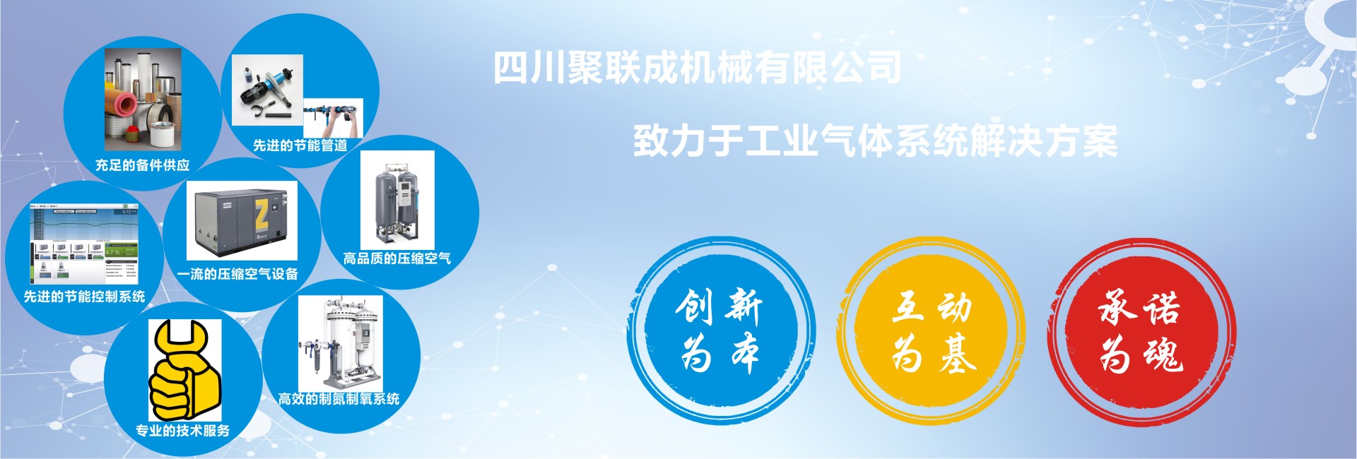聚聯(lián)成一直致力于工業(yè)生產(chǎn)解決方案的系統(tǒng)供應(yīng)商我們憑借與Atlas Copco(阿特拉斯·科普柯)、BEKO(貝克歐)、GardnerDenver(格南登福工業(yè)集團(tuán))CompAir(康普艾)、同悅氣體等國(guó)際品牌之間的密切合作關(guān)系,我們的解決方案包括氣體壓縮機(jī)、氮?dú)庋鯕庠O(shè)備、空氣處理系統(tǒng)、維護(hù)保養(yǎng)、通過(guò)專業(yè)的產(chǎn)品技術(shù)與高級(jí)服務(wù)工程師團(tuán)隊(duì),具備專業(yè)的技能,聚聯(lián)成將為您提供優(yōu)質(zhì)的產(chǎn)品和服務(wù)